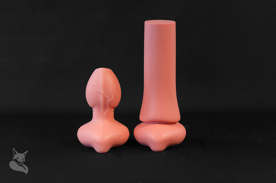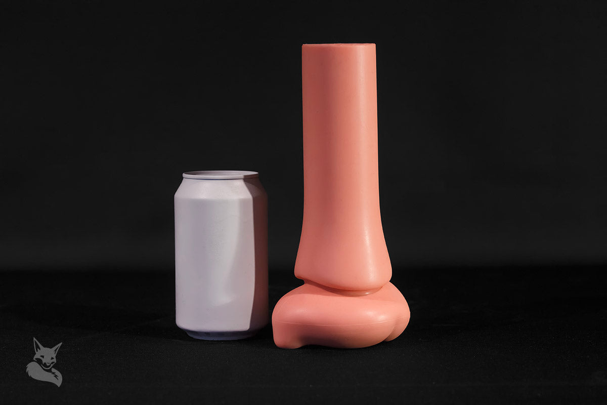 The cookie may be considered relatively big. A fursuit adds thickness and size to a person so the genitals has to be larger too. Additionally the sleeve should be large enough to fit a dick through it, which contributes to a large knot and an overall large toy. In the images above, you'll find a size chart.